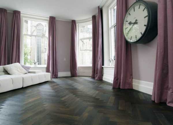 Такое покрытие является недорогим, но практичным. Сегодня имеется множество вариантов такого материала, имеющего разнообразную визуальную отделку. Однако под такой пол нельзя укладывать систему подогрева. Линолеум, который имитирует паркет, гармонично впишется в классический интерьер. Если выбрать линолеум, на ремонте пола получится хорошо сэкономить.