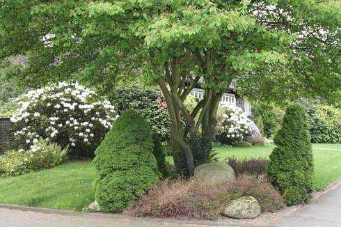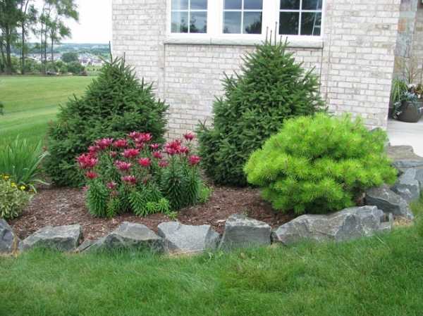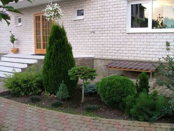 Конечно, если площадь палисадника позволяет, допускается посадить и высокорослые хвойные деревья, но их не должно быть много.