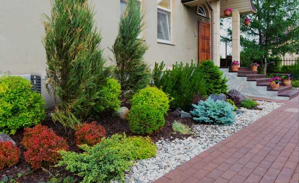 Рокарий у дома с хвойниками и гортензиейСоветы по созданию ландшафта возле дома: