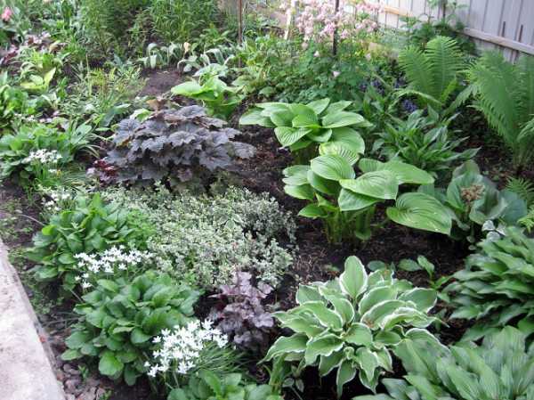 Растения для тенистого сада: хосты, папоротники и т.д.