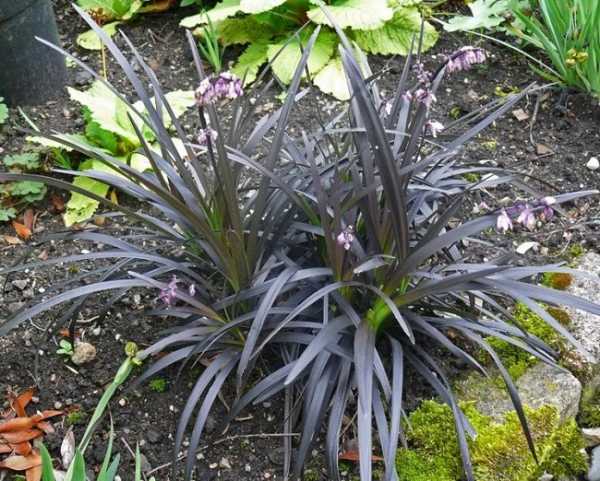 Высокой декоративностью отличается также офиопогон. В зависимости от сорта, его линейные кожистые листья бывают зелеными, почти черными, зелеными с белой или желтой полосой, белыми с узкой зеленой полоской.