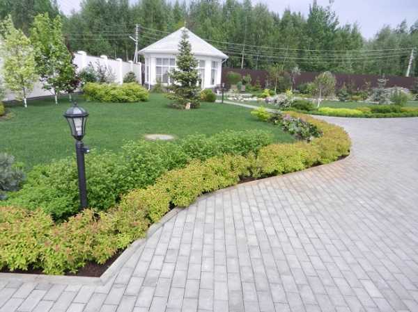 Бордюр из спиреиСуществует еще много идей для дизайна палисадника: строгий зеленый газон, многоцветный мавританский луг, сад камней, вертикальное озеленение.