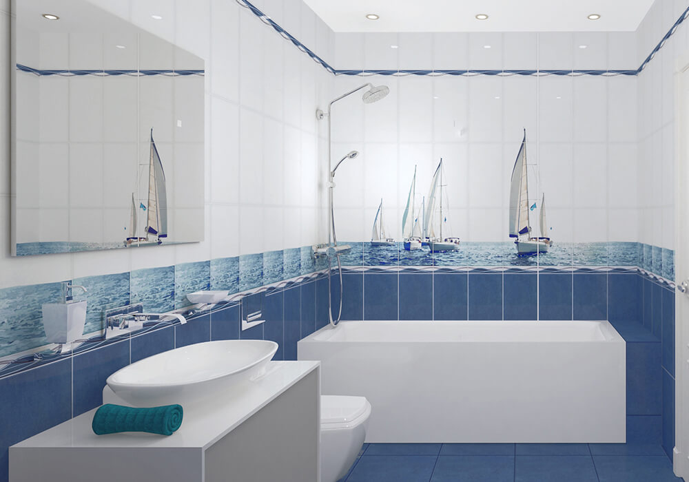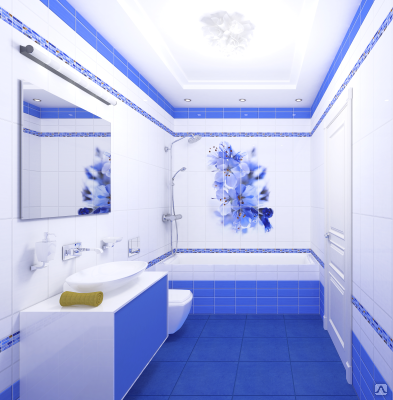 При выборе изделий с рисунком желательно избегать крупных деталей и панно: мелкие узоры зрительно раздвинут стены и приподнимут потолок. Если же ванная достаточно просторная, количество вариантов дизайна существенно возрастает.