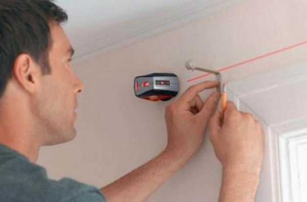 Разметку наносить лучше с использованием гидроуровня. Если помещение, где будет установлен потолок ПВХ небольших размеров, гидроуровень можно не использовать. Его альтернативой выступит обычная рейка или строительный уровень. По установленным отметкам проводится ровная горизонтальная линия по периметру помещения.