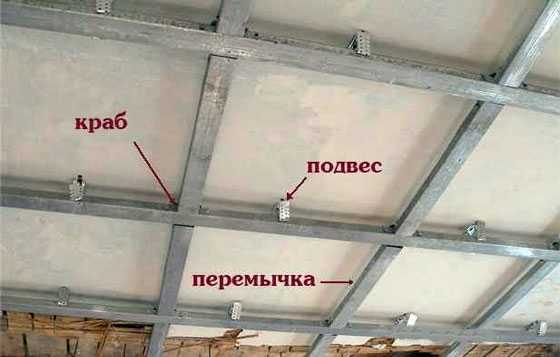 Если предполагается установить накладные светильники, опускать каркас нет необходимости. Его можно смонтировать прямо по черновой поверхности потолка. Встраиваемые осветительные приборы требуют снижения обрешетки на 10-12 см от чернового потолочного пространства.