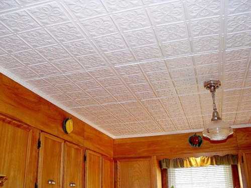 - Пенополистирол. Приклеивающиеся к потолку панели.