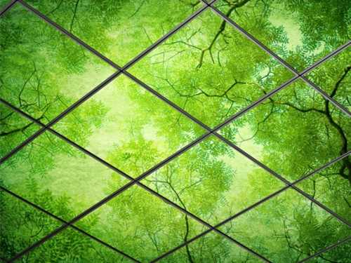 Зеркальный потолок, матовый стеклянный потолок, витраж, художественная роспись – все это возможно воплотить с помощью стеклянных потолочных панелей, которые могут быть как из силикатного стекла, так и из акрилового (оргстекло). Такие панели выпускаются в размерах 600х600 мм, что позволяет их использовать в подвесных системах Армстронг.