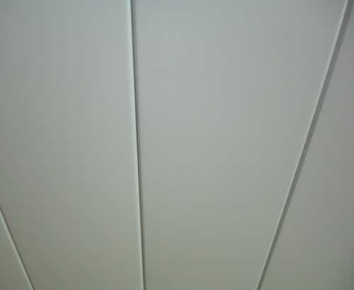 Потолочные панели из ПВХ бывают двух модификаций – для реечных потолков и панели, монтируемые на обрешетку. В отличие от алюминиевых пластиковые панели менее прочные, поэтому при выборе необходимо обращать внимание на ребра жесткости. Их должно быть достаточно много, и они должны быть крепкими. Многие производители уменьшают количество ребер жесткости для удешевления изделия и снижения его веса, чтобы его можно было закреплять без обрешетки, но это очень спорно и опасно.