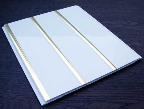 Что касается толщины, то в стандартных размерах она указана полностью. Однако конструкция панелей ПВХ сложная и состоит из трех слоев: наружный, жесткий поливинилхлорид, внутренние ребра жесткости. Края панелей оформлены сложными конфигурациями, обеспечивающими надежное сцепление на потолках панелей ПВХ между собой.