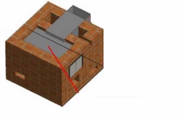 - Дымоотвод выкладывают из шамотного кирпича и постепенно сужают к верху. Устанавливается заслонка. Дымоход можно установить через крышу или стену. Для этого в местах его прохождения нужно положить слой теплоизоляции. Дымовая труба в процессе эксплуатации может запылиться осадками от топлива. Для предотвращения этого можно сделать жестяную защиту в виде колпака.