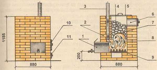 Таким образом, наиболее простой вариант реализации кирпичной печи для бани с закрытой каменкой — это прямоточная печка без дымооборота. Что не лишено плюсов, потому что избавляет владельца от необходимости более сложной, чем в данном случае, прочистки.