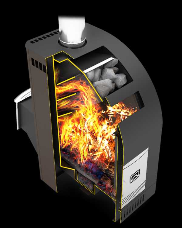 Они выделяют тепло и нагревают камни, которые расположены над топкой. За счет увлажнения каменки водой происходит выделение пара и воздух нагревается. Углекислый газ при правильной конструкции устройства отводится через дымоход. А все присутствующие в бане наслаждаются ароматом дерева и паром от раскаленных камней.