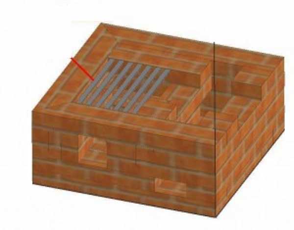 - Поверх пятого ряда укладываются стальные уголки для колосника.