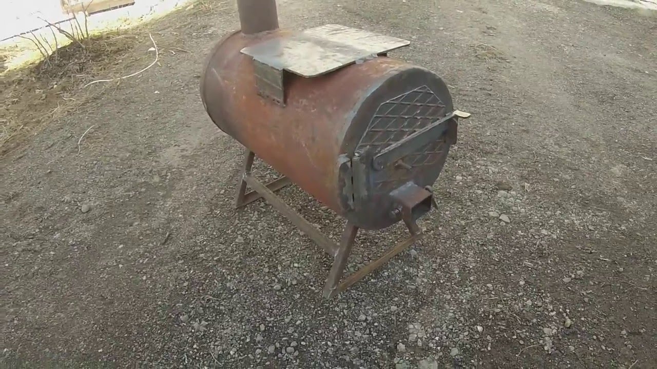 Привариваем петли на дверку и устанавливаем ее с торца изделия. Печь готова к эксплуатации.