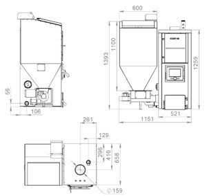 - Из-за наличия бункера, пеллетный котёл является довольно габаритным устройством.