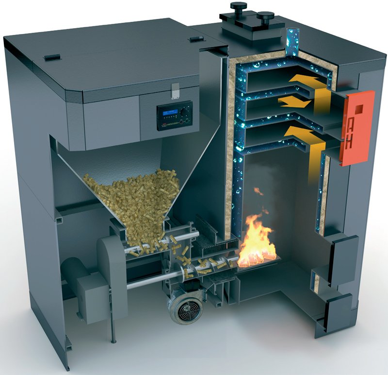 Котел на древесных гранулах Windhager BioWIN2 от Pellergy представляет собой полностью автоматическую систему, которая включает в себя: