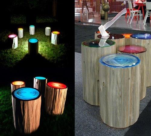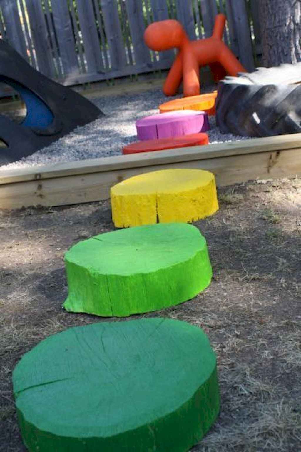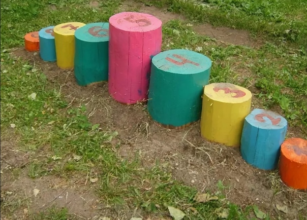 . Ещё из пеньков можно сделать детские столы и стулья. А из круглого среза дерева — замечательную дорожку, уложив её между качелями и песочницей.