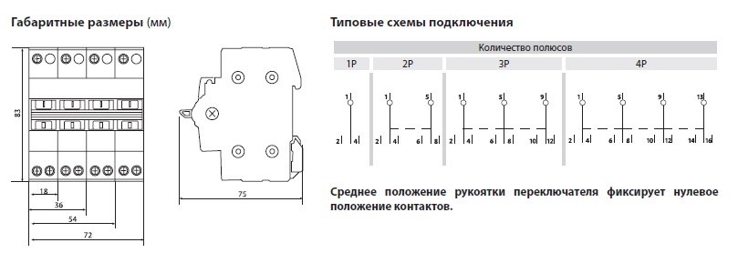 Схема подключения справа показывает, как контакты и лампы подключены внутри.