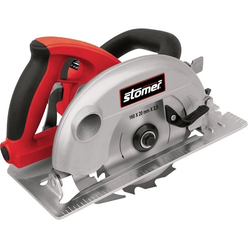 Циркулярная пила производит рез при помощи диска с зубьями. Держать этот инструмент необходимо двумя руками, в отличие от предыдущего. Большинство производителей дисковых пил предусматривают возможность установки инструмента диском вверх, тем самым превращая его в небольшой станок. Рез может производиться как перпендикулярно плоскости материала, так и под различными углами. Глубина пропила регулируется перемещением положения платформы пилы и обычно не превышает 85 миллиметров.