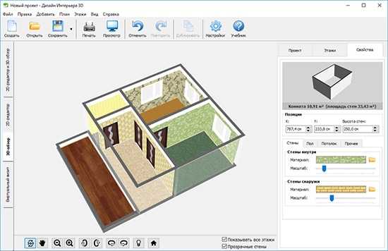 Но и это не все! «Дизайн Интерьера 3D» пригодится вам и при планировании ремонта. Если вы хотите сменить в помещениях покрытие пола, обои, отделку потолка — то не стоит сразу же бежать в магазин за материалами для ремонта. Сначала примерьте новую «одежду» на виртуальную копию своего дома. Вдруг она будет не очень удачно смотреться? При этом вы можете работать с материалами из каталога софта, в котором представлено 120+ различных текстур, или же загрузить фото реальных вариантов отделки и использовать их.