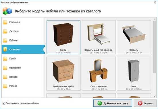 - ✓ 100+ предметов мебели для обустройства комнат. Добавляйте нужные элементы на план, настраивайте их положение, размер и вид до самых мелочей!