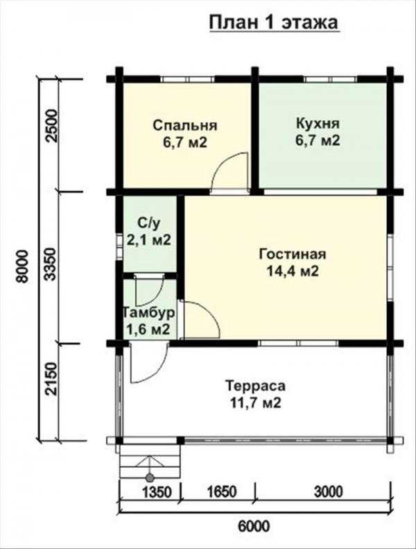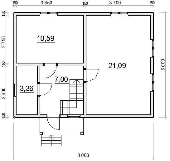 Характерной особенностью является наличие тамбура, который не пропускает холодный воздух и влагу внутрь дома. Также присутствует санузел, просторный холл, гостиная и отдельная кухня.