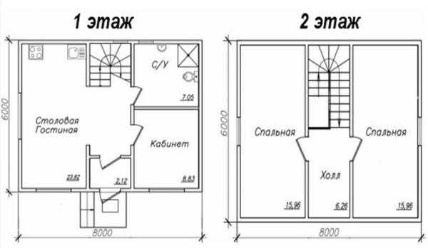 Планировка дома 6 на 8 с мансардой: проекты, фото