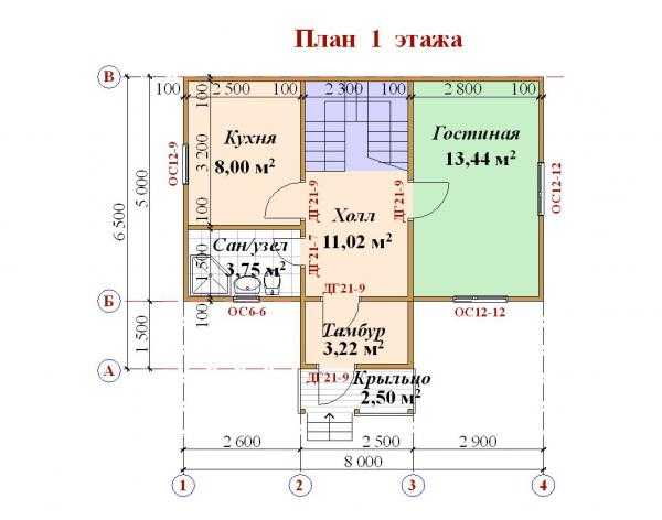 Смотрите также подробный проект двухэтажного дома 8 на 8.