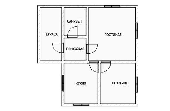 Как видите, помещение состоит из трёх комнат, кухни и террасы, причём все углы прямые и имеют 90⁰, что очень важно соблюсти в нулевом цикле, так как в противном случае возникнут проблемы при монтаже крыши.