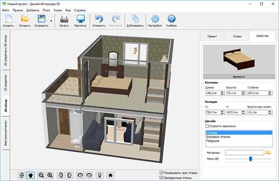 Если вы никак не можете определиться с тем, какие функции раздать помещениям в новоприобретенном доме, то на помощь придет программа «Дизайн Интерьера 3D». Установив софт на ПК, вы сможете воссоздать точный виртуальный аналог своего жилища: для быстрого начала работы вам нужно лишь отсканировать готовый план дома, а затем просто загрузить его в программу.