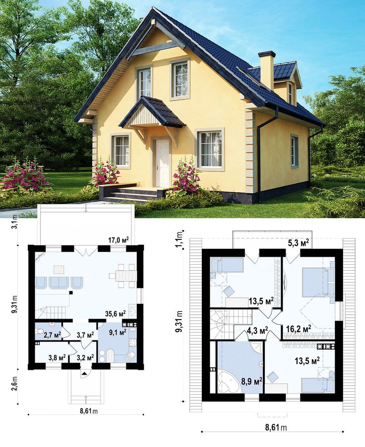 Проекты небольших домов и недорогих коттеджей в два этажа