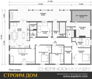 - Отсутствие в проекте лестниц и проходов коммуникаций на более высокие этажи. Благодаря этому, планировка постройки в один этаж позволяет эффективно воспользоваться имеющимся пространством;