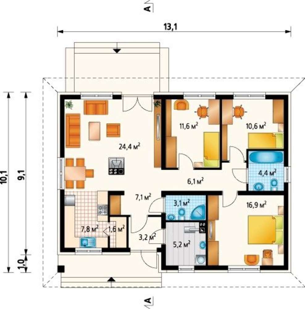 Одноэтажный дом 10×10: планировка комнат, варианты проектов