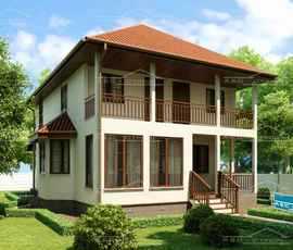 Двухэтажный деревянный дом.