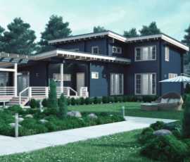- Как и прочие проекты деревянных домов 120-200 м кв., этой включает два совмещенных санузла — один на этаж;