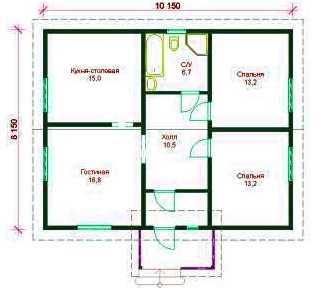 Планировка одноэтажного дома размером 10х10.
