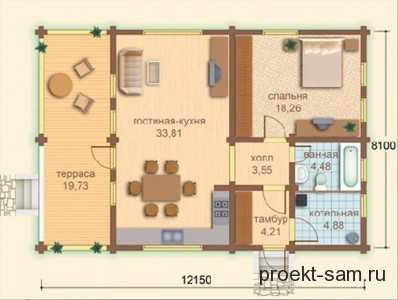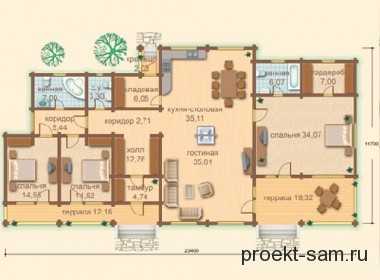 Пример планировки одноэтажного деревянного дома с сауной Вернуться к оглавлениюСодержание материала