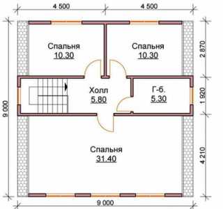 - 9 x 10м Площадь застройки