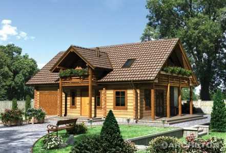 Проект деревянного дома со встроенным гаражом