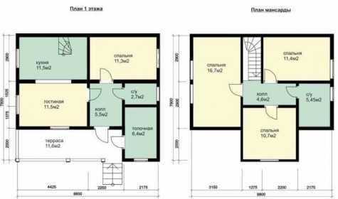 Один этаж и мансарда, 10х10 м