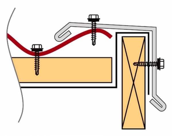 Длина саморезов выбирается в зависимости от особенностей главного кровельного материала и толщины реек обрешетки. Рекомендуется выбрать кровельные саморезы 28-миллиметровой длины (для боковых креплений) и карнизные крепежные элементы длиной 80 мм.