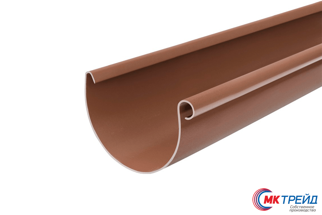 Современный российский водосток из ПВХ. В ассортименте два коричневых цвета.