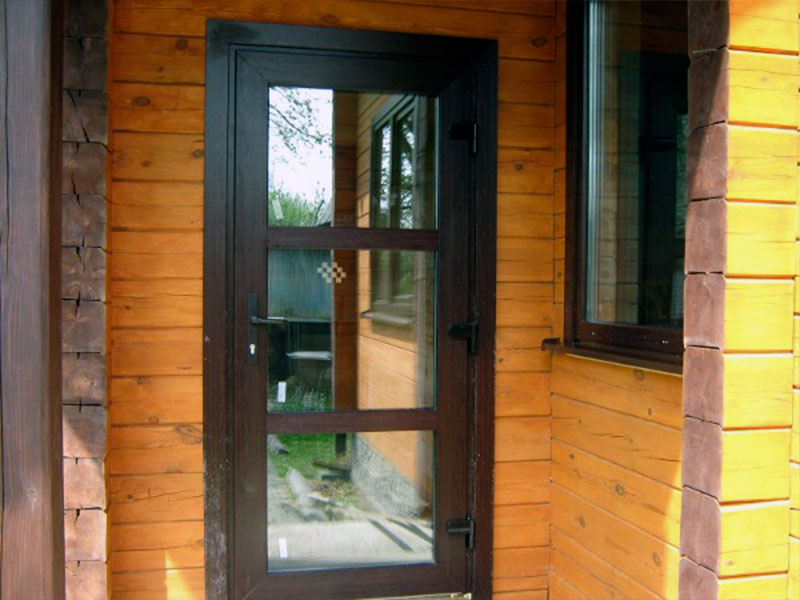 конструкции без остекления с сэндвич-панелью. Теплоизоляцию подобного изделия будет выше, чем у двери со стеклопакетом.