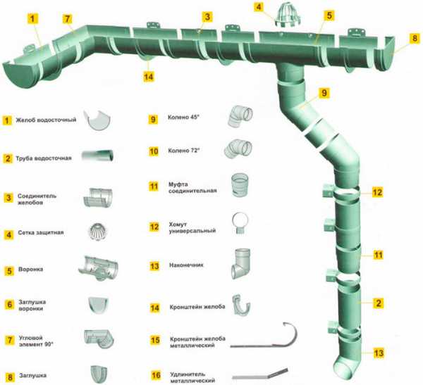 Важно! Желательно для создания системы пользоваться деталями, выпущенными одним производителем, так как иначе велика вероятность, что они не будут стыковаться друг с другом за счет незначительной разницы в размерах, читайте также: какой водосток лучше металлический или пластиковый.