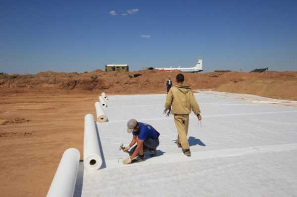 В завершение подготовки котлована под фундамент, на щебень укладывают геоткань, которая будет препятствовать просачиванию бетонного молочка к щебню.