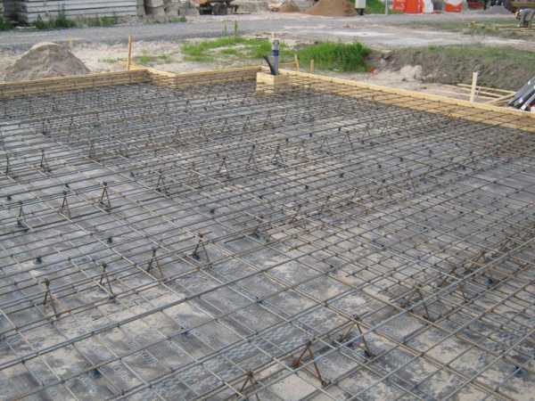 Арматурный каркас. Обычно он представляет металлическую сетку, уложенную в два ряда параллельно. Не забывайте, что на также данном этапе монтируются отводы коммуникации.