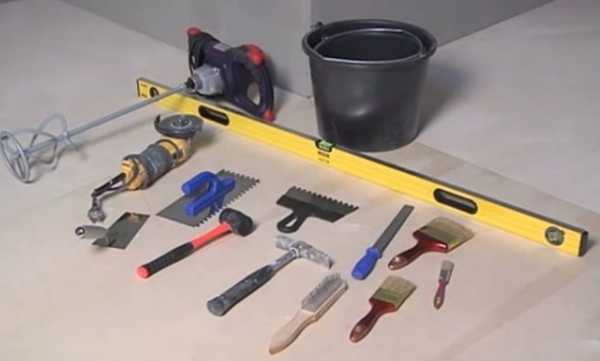 Прежде чем перейти к описанию подготовительных работ, необходимо перечислить инструменты, без которых невозможно будет произвести подготовку пола и укладку облицовки.