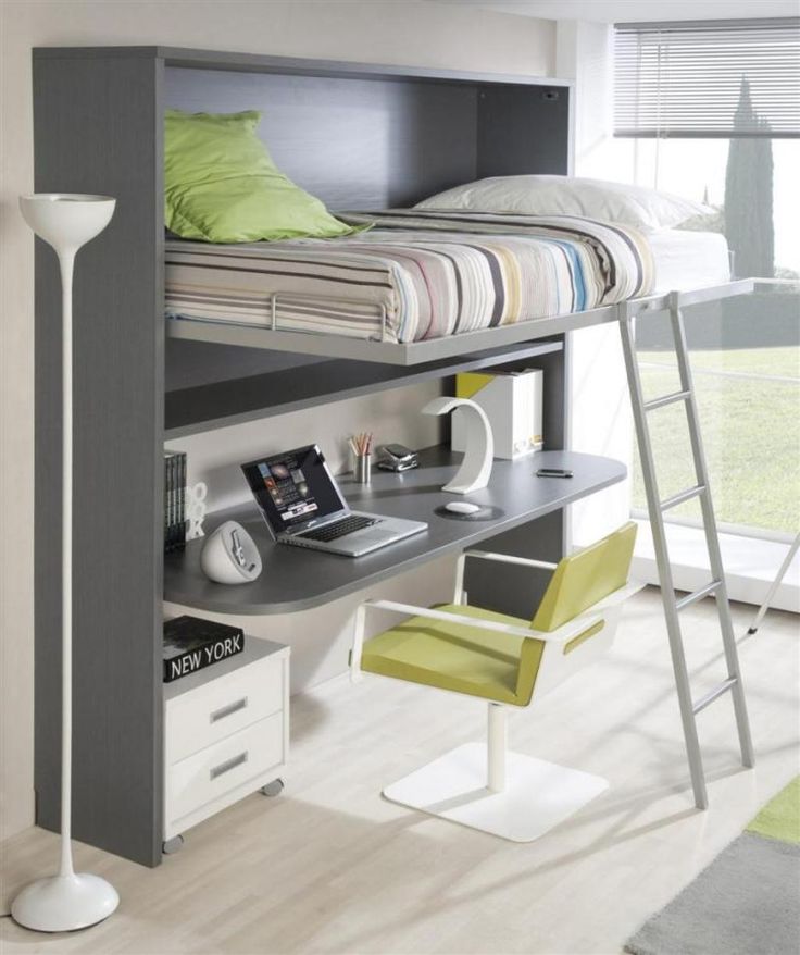 Еще одно интересное сочетание кровати и письменного стола. Это тип мебели, который может быть идеальным для небольших помещений или для домашних офисов, которые также могут использоваться в качестве гостевых комнат.