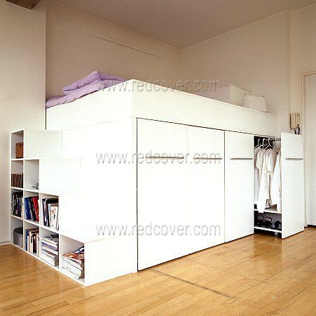 Конечно, вы можете немного усложнить ситуацию и добавить к своей кровати еще больше места для хранения. На самом деле, кровать может быть просто аксессуаром, интегрированным в гораздо более сложную конструкцию, которая также включает в себя книжный шкаф, лестницу, ящики и множество мест для хранения.