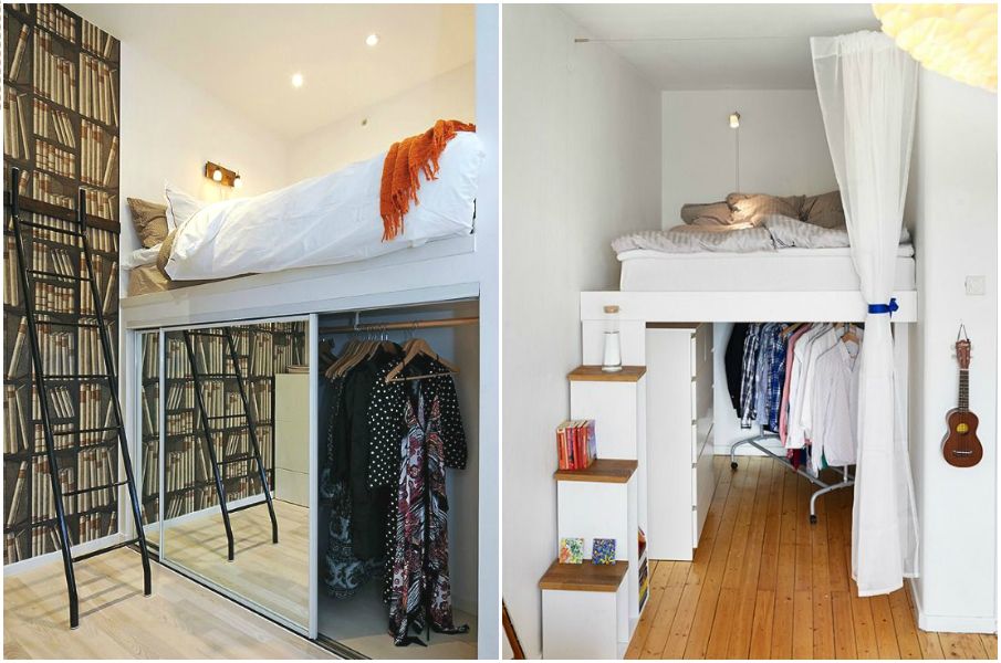 В некоторых случаях целесообразно поднять всю спальню на платформу. Это может быть в случае с открытыми спальнями, которые очень маленькие и являются частью открытой планировки. Такое дизайнерское решение позволяет иметь большую и удобную кровать и достаточно места для хранения на очень маленьком пространстве. Платформа предлагает много места внизу для больших ящиков для хранения подушек, одеял, одежды и других вещей.